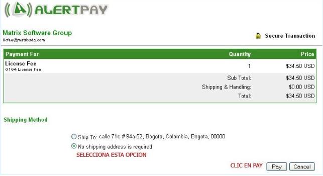En este paso vas a seleccionar la opción que dice No shipping adress is required, y haz clic en pay. Si tienes algún reto con algunos de los pasos, comunicate conmigo.