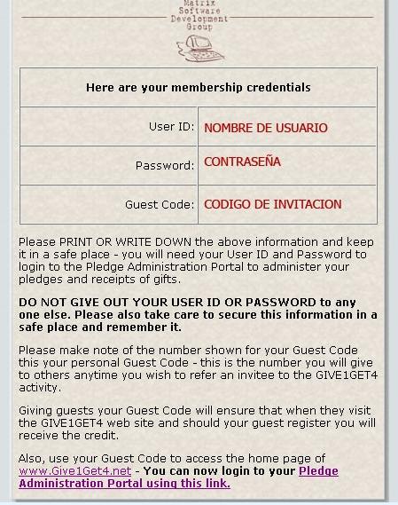 Ingresa a la página www.give1get4.net y llena el formulario de la izquierda. Recuerda escribir donde dice Guest Code, mi código de invitación ¿lo recuerdas? Esta en la página principal..