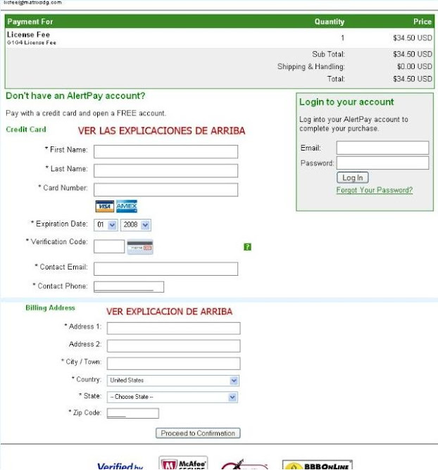 Importante: Si después de hacer clic en la imagen de AlertPay te sale algún aviso que te dice que el certificado de esta página web... haz clic en aceptar, o si estas en Windows vista, y te lleva a una página en blanco haz clic donde dice ir a este sitio web.